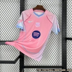 FC Barcelona’s pink jersey is more than just a piece of sportswear; it is a symbol of innovation, inclusivity, and the unbreakable bond between the club and its supporters. From its bold and vibrant design to its cultural and social significance, the pink jersey has left an indelible mark on football fashion. It represents a departure from tradition while honoring the club’s rich heritage, capturing the essence of FC Barcelona’s spirit and vision.