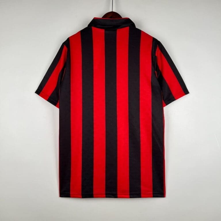 The AC Milan 1989-90 Home Kit is a legendary piece of football heritage, symbolizing one of the club’s most dominant eras. Worn by icons like Marco van Basten, Franco Baresi, Paolo Maldini, Ruud Gullit, and Frank Rijkaard, this retro kit features Milan’s signature red and black stripes, a stylish white collar, and the classic Mediolanum sponsor. This classic jersey was worn during Milan’s triumphant 1989-90 European Cup-winning campaign, further cementing its place in football history. A true vintage jersey, this classic kit is a must-have for fans of retro jerseys, celebrating Milan’s golden era in the late 80s and early 90s.