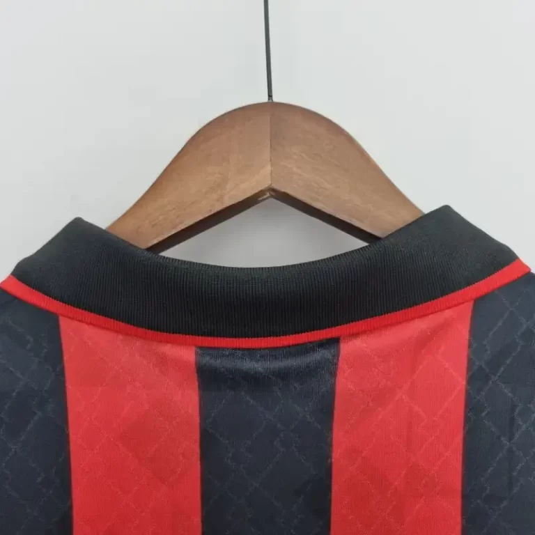 The AC Milan 1995-96 Home Kit is a stunning example of football heritage, featuring the club’s iconic red and black stripes that have become synonymous with their storied history. Worn by legends like Paolo Maldini, Franco Baresi, Roberto Baggio, and George Weah, this retro kit embodies the elegance and power of Milan in the mid-’90s. With its classic jersey design and subtle Adidas details, this vintage jersey stands as a symbol of the club’s dominance during that era. A true fan favorite, this classic kit is a prized piece for collectors and enthusiasts of retro jerseys.