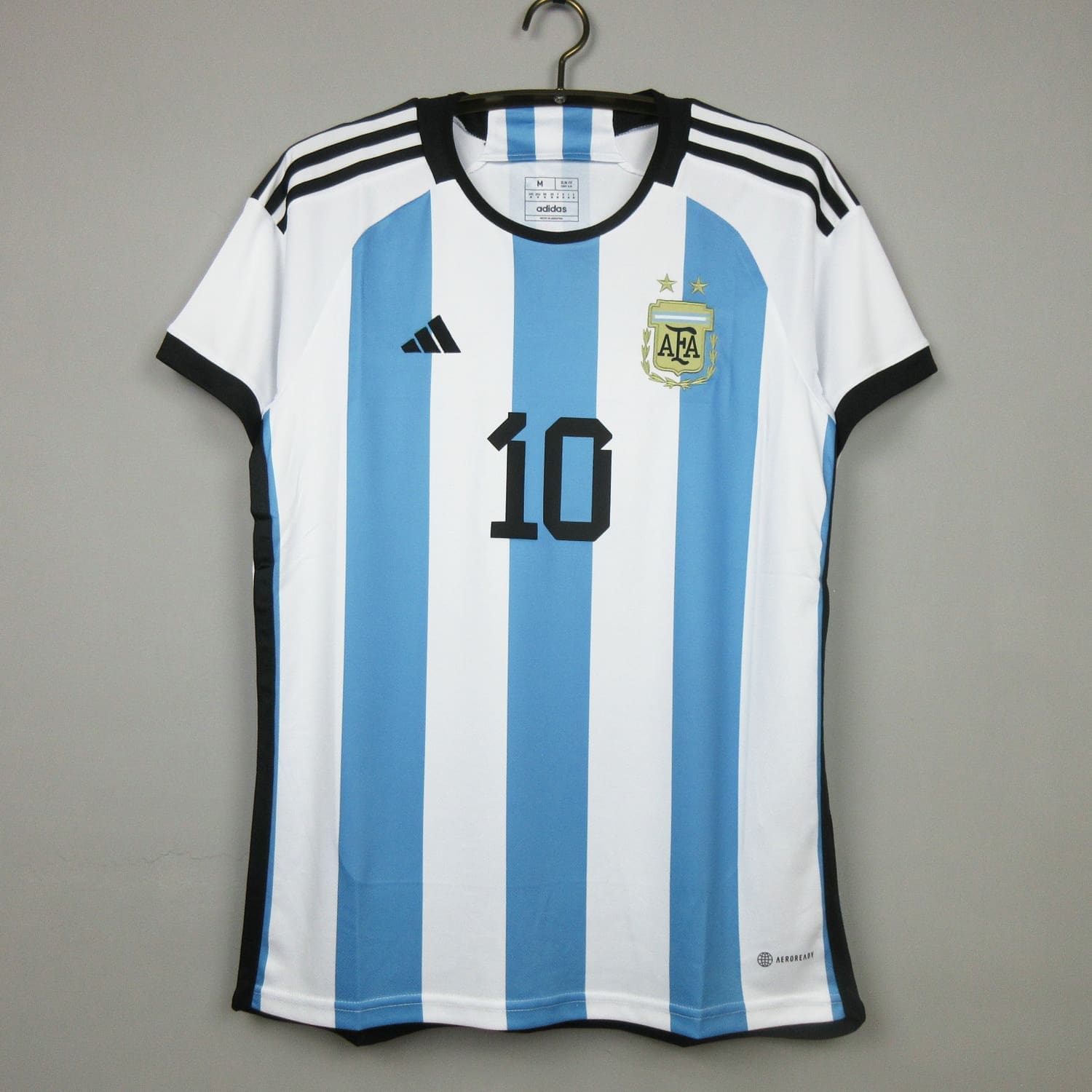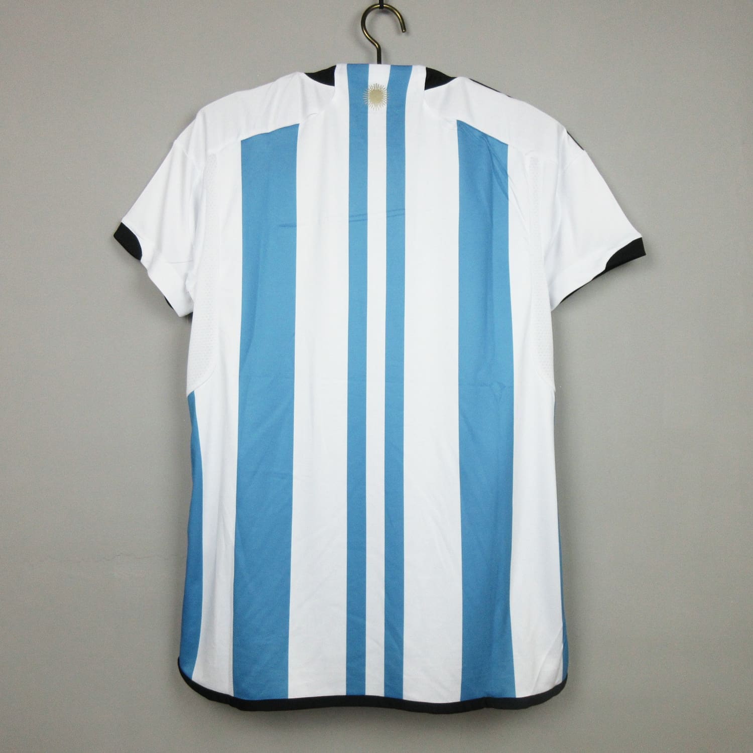 The Argentina Home Jersey for the 2022 World Cup – Fan Version is a vibrant celebration of the nation’s footballing heritage and passion. Emblazoned with the iconic sky blue and white stripes, this jersey is a symbol of pride for fans around the world.