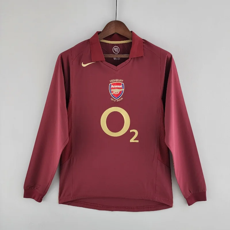 The Arsenal 2005-06 Long Sleeve Home Retro Kit is a nostalgic design that represents a key moment in the club’s football heritage. Featuring the classic red with white sleeves and gold accents, this shirt was worn by iconic players like Thierry Henry, Robert Pirès, and Cesc Fàbregas during the 2005-06 season, when Arsenal reached the Champions League Final. Known for its sleek long sleeves, this kit is a must-have for fans and classic football shirt collectors, representing a time of ambition and near glory in Arsenal’s storied history.