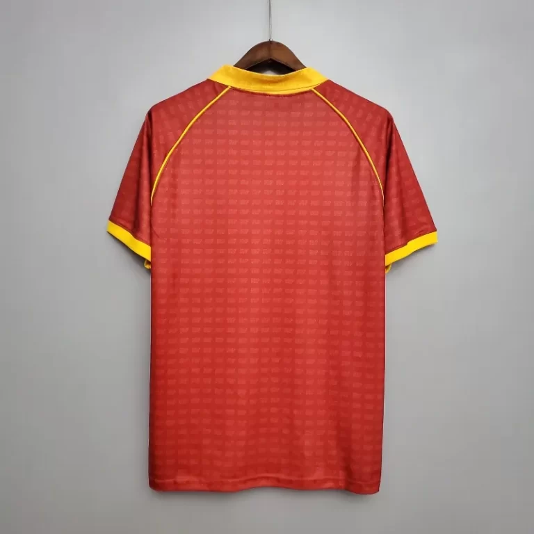The AS Roma 1990-91 Home Kit is a classic jersey that takes us back to a memorable era of football heritage. Featuring Roma’s iconic deep red color with subtle yellow and orange accents, this retro kit is instantly recognizable. It represents an era when AS Roma was a dominant force in Italian football, competing fiercely in Serie A.