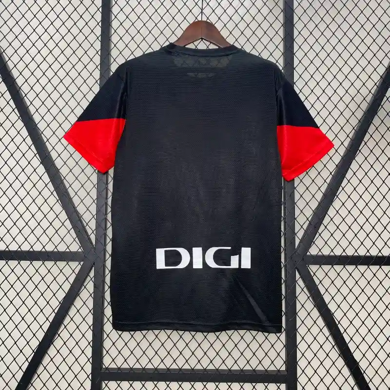 The Athletic Bilbao 24/25 Black & Red Pre-match Kit – Fan Version features a sleek and energetic design that highlights the club’s bold and dynamic identity. With a striking black base accented by vivid red details, this kit captures the essence of Athletic Bilbao’s fearless spirit on the pitch. The pre-match design is all about performance and style, featuring a modern, slim fit that provides optimal movement and comfort for fans. The iconic Athletic Bilbao crest proudly adorns the chest, symbolizing the club’s rich footballing history and fierce loyalty. Perfect for pre-match warm-ups or casual wear, this pre-match kit combines both aesthetic appeal and practical function, ensuring fans can support their team with pride and confidence, whether at the game or on the streets.