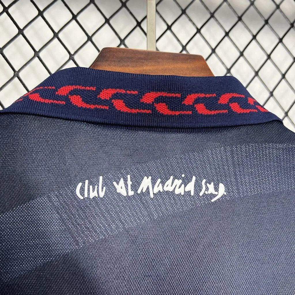 The 1996/1997 Away Kit features a based design with actual mid-90s detailing, perfect for creditors, display, or lovers wanting to relive Atletico Madrid’s memorable away campaigns.