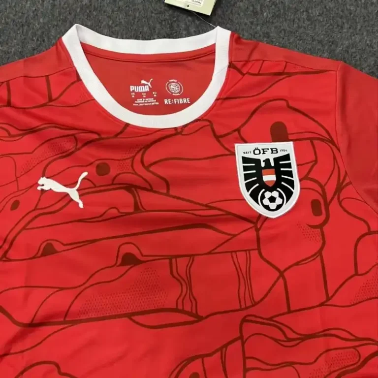 The Austria 2024 Euro24 Home Kit – Fan Version embodies the country’s football heritage with its striking red and white design. Crafted for comfort and performance, this retro kit pays homage to the classic style of past Austrian teams while incorporating modern materials for a perfect fit. Whether you’re watching the action from the stands or showing your support from afar, this vintage jersey offers both style and functionality. With its bold design and rich football heritage, the Austria 2024 Euro24 Home Kit is a must-have for any passionate fan.