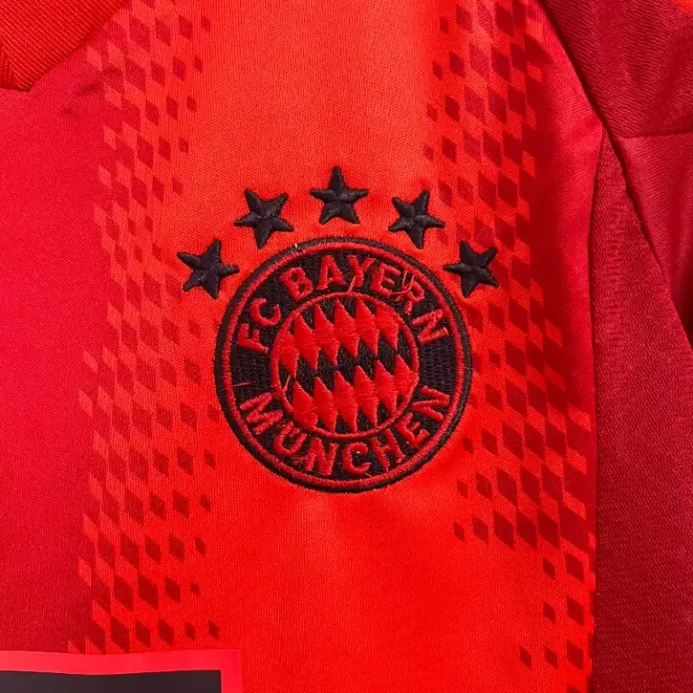 Made with lightweight, breathable fabric, this vintage jersey-inspired kit ensures comfort whether they’re playing on the field or cheering for their favorite team. The club crest and sponsor detailing are carefully crafted, showcasing Bayern’s legacy in football.