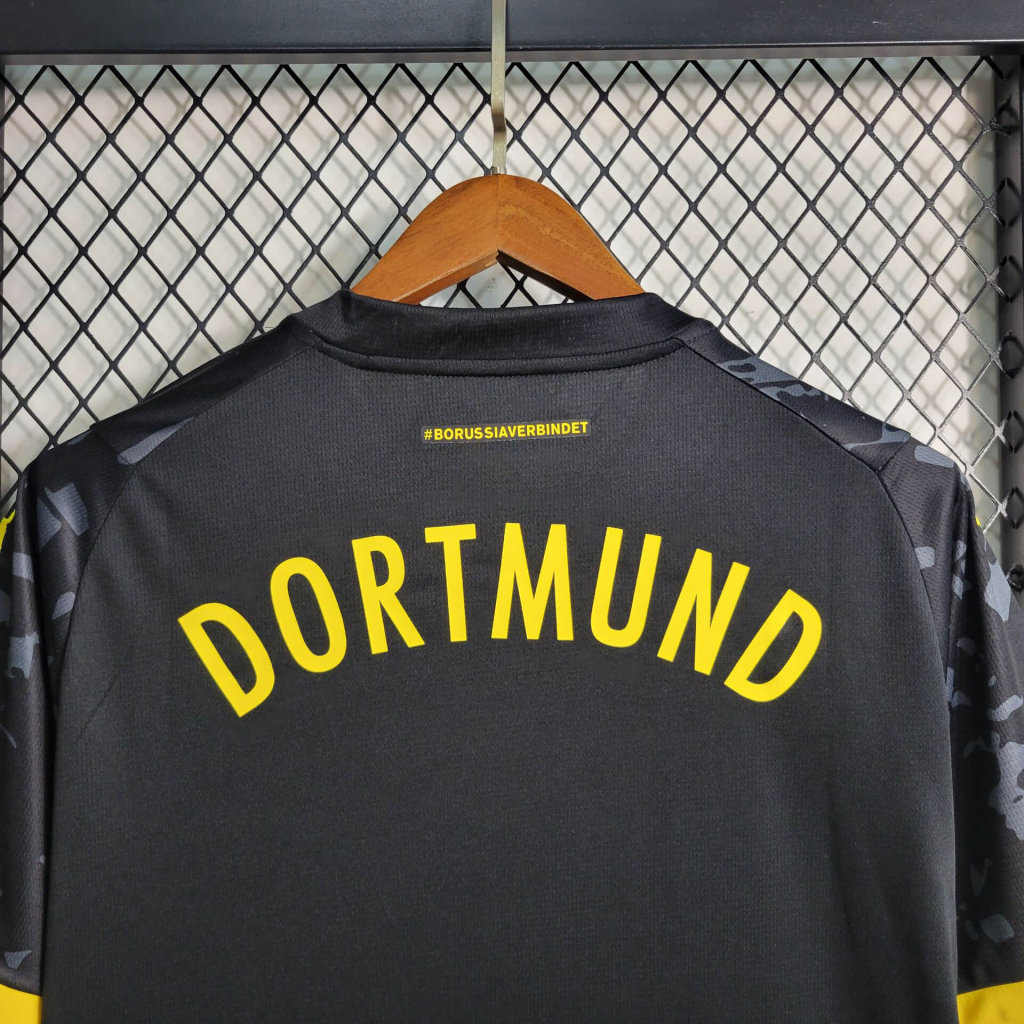 The Borussia Dortmund 23/24 Away Kit – Fan Version is a stunning representation of the club’s spirit and style. Crafted with meticulous attention to detail, this football jersey captures the essence of Borussia Dortmund’s electrifying brand of football and the passion of its loyal supporters. With its vibrant design and bold colors, this classic football shirt embodies the football heritage of the club while adding a modern twist. The iconic yellow and black color scheme, synonymous with Borussia Dortmund, is enhanced with innovative patterns, creating a visually captivating look that appeals to fans of retro and vintage football kits alike. Whether you’re a die-hard supporter or a collector of classic football shirts, the Borussia Dortmund 23/24 Away Kit – Fan Version is a must-have addition to your collection. Join the ranks of Borussia Dortmund fans and celebrate the club’s rich history with this timeless jersey.