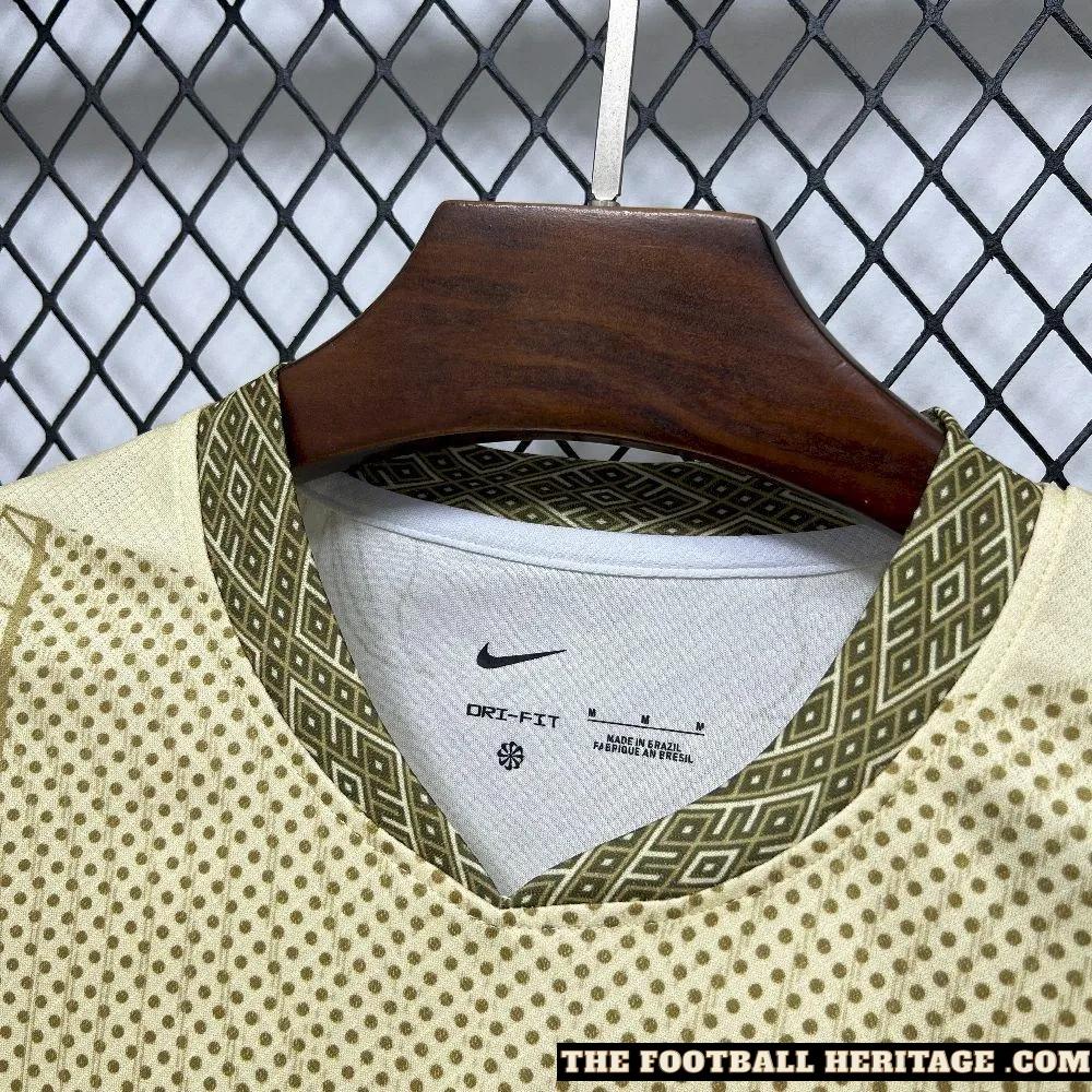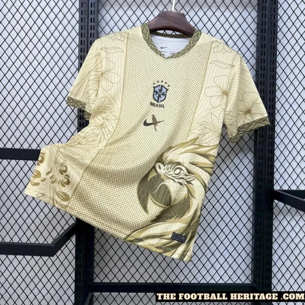 Shine vibrant with the Brazil Parrot Gold Kit – Fan Version, a Football Kit that captures the power, aptitude, and iconic style of Brazilian soccer. Featuring rich gold tones accented with vibrant green and blue information, this Football Jersey celebrates the Seleção’s mythical creativity and ardour. Perfect for cheering on suit days, informal wear, or including to a collection, this Soccer Jersey is a formidable declaration of Brazil’s football background.
