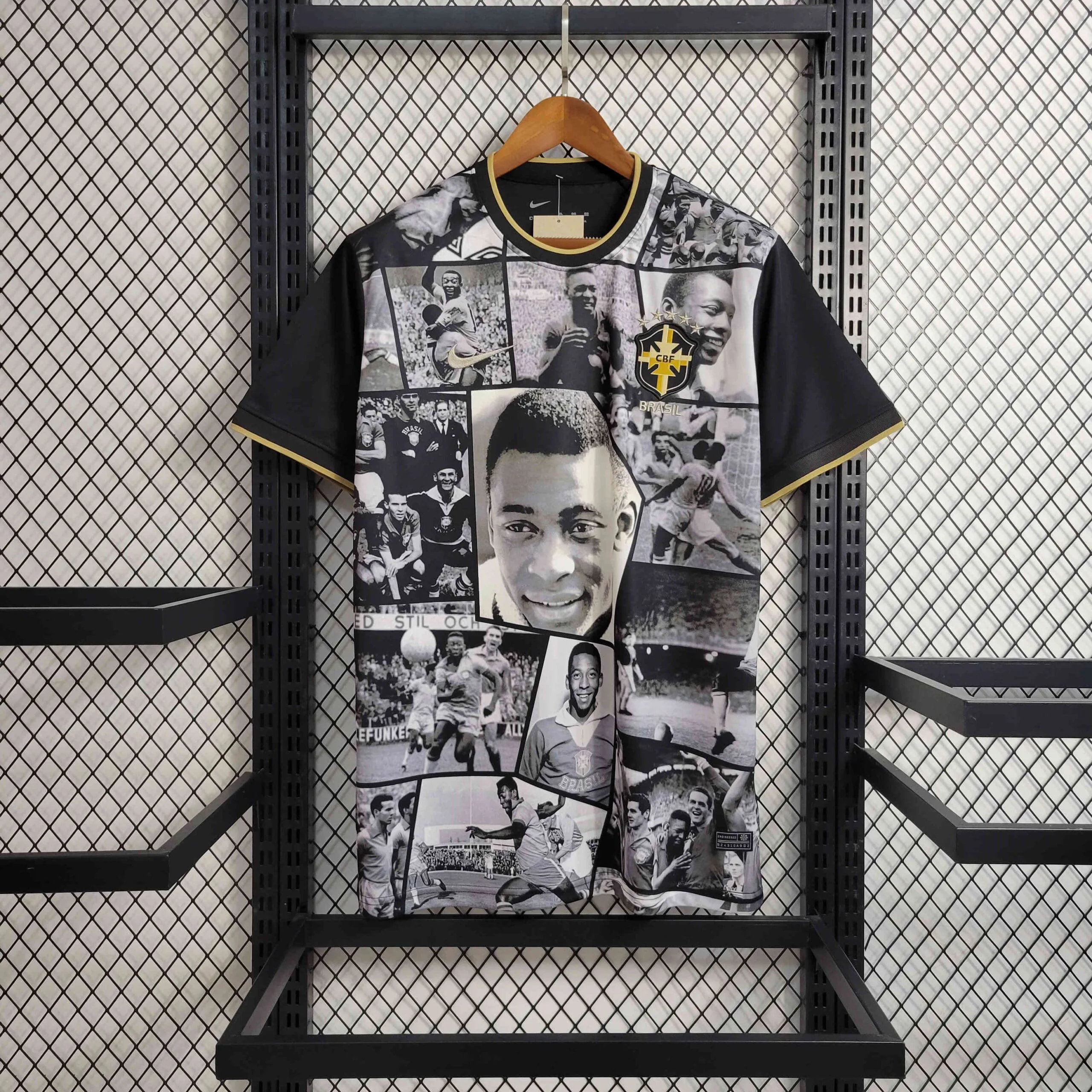 Pay homage to the legend of Brazilian football with the Brazil Young Pelé Special Black Kit – Fan Version. This sleek black kit is designed to honor the early years of Pelé, one of the most iconic players in football history. With its striking design and bold aesthetic, this kit blends the power of football with the rich history of Brazil’s golden era. Perfect for fans and collectors, this jersey is a true piece of football heritage. Visit The Football Heritage to explore a wide selection of retro kits, classic shirts, and vintage football apparel, celebrating the past and future of the beautiful game.