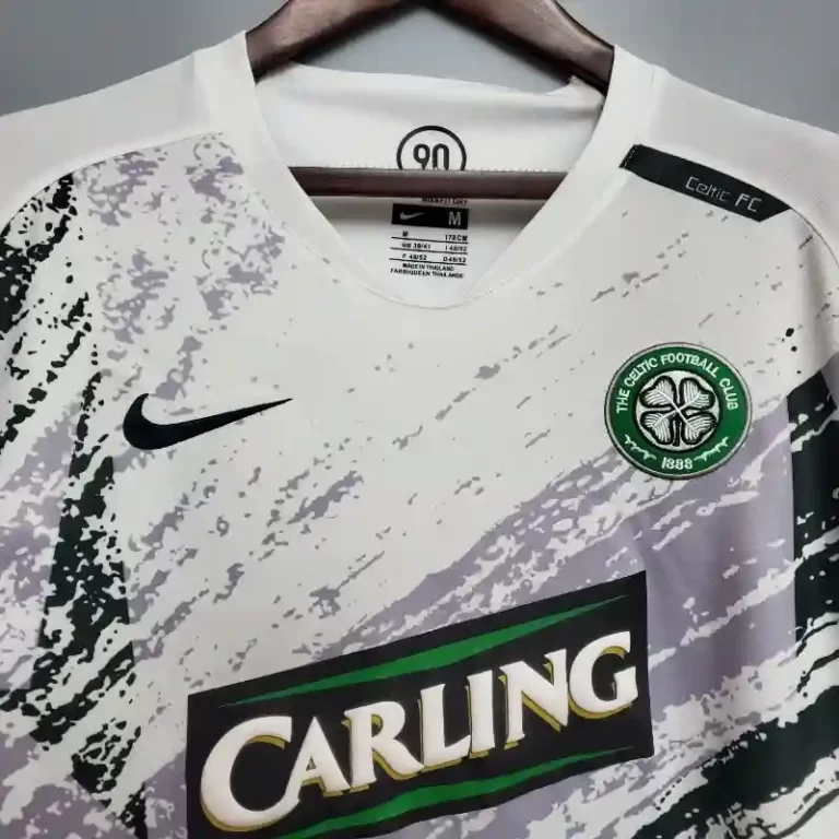 The Celtic 2007-08 Away Kit is a classic jersey from a memorable season in the club’s history. Featuring a bold black and green vertical stripe design, this retro kit was a striking departure from the traditional Hoops, offering a fresh yet historic look.