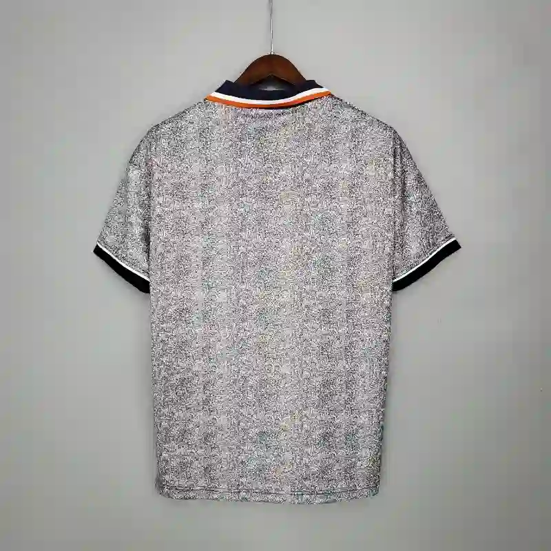 The Chelsea 1994-96 Away Retro Kit is a bold and memorable design from the club’s football heritage. This striking orange and graphite-gray striped kit, complete with the Coors sponsor, was worn by Chelsea icons like Dennis Wise, John Spencer, and Ruud Gullit. Representing a transitional period for the club, this kit stands out for its unique style and connection to Chelsea’s mid-90s campaigns. A favorite among classic football shirt collectors, it’s a vivid reminder of Chelsea’s evolving identity during that era.