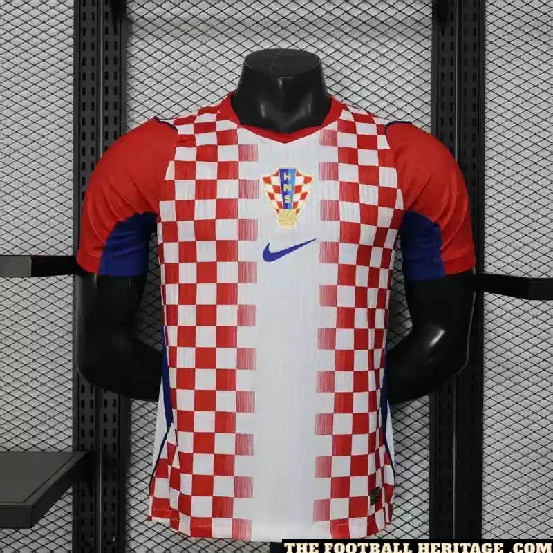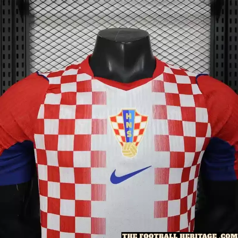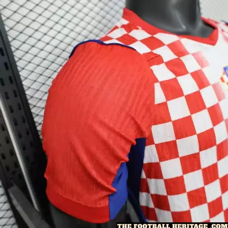 Visually, this edition strikes a perfect balance between a clean, heritage look and a high-tech future. The checkers are bold and unapologetic, laid out with a mathematical crispness that looks striking from the top row of the stadium. Being the player version, the cut is noticeably sharper—it hugs the frame to ensure there’s zero wasted energy or distracting fabric during a sprint. The neckline is a modern, low-profile hybrid that stays out of the way, while the overall profile is geared toward the explosive movement of the modern game. It’s a Football Jersey that looks like a piece of art but performs like a precision instrument, capturing that specific “Vatreni” energy that has terrified the world’s biggest teams for decades.