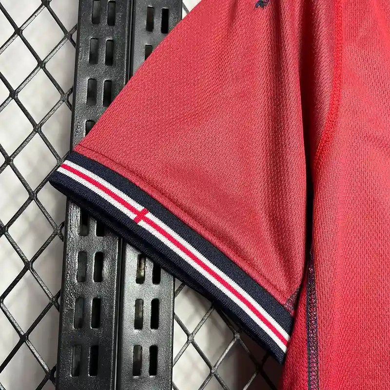 The England 2002 Away Kit – Fan Version is a nostalgic tribute to a memorable era in football. Featuring a striking red design with navy accents, this retro jersey embodies the football heritage of the early 2000s. Worn by legends like David Beckham and Michael Owen during the iconic 2002 World Cup campaign, it carries a sense of pride and passion. Made from comfortable, durable materials, this classic kit is perfect for fans who want to relive the magic of England’s journey on the global stage.