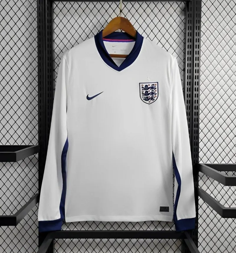 The England 2024 Home Kit – Long Sleeve combines tradition with modern performance. Featuring the classic red design that fans have come to love, this retro-inspired jersey pays homage to England’s football heritage. The long sleeves provide extra warmth and comfort, perfect for match days or cooler weather. Made with advanced materials, the kit ensures breathability and flexibility, offering a perfect balance of style and performance for supporters. Whether worn in the stands or on the streets, this jersey is a must-have for any England fan.