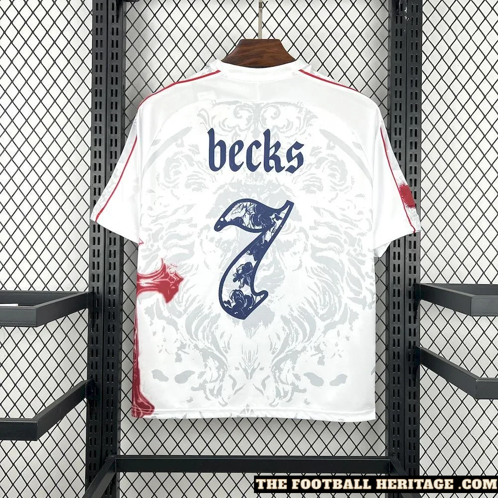 The England Becks shirt – Fan Version celebrates the undying legacy of David Beckham, a true icon of English football. Designed with a clean, stylish look, this Football Kit can pay tribute to his elegance on the pitch, his signature unfastened-kicks, and the unforgettable moments he introduced for the Three Lions.