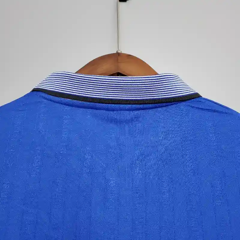 The Everton 1994/1995 Home Kit is a nostalgic classic that represents a pivotal moment in football heritage. This iconic jersey features the club’s signature blue with white and yellow accents, paired with the bold and timeless “Chico” sponsor logo. The sleek collar and simple design evoke a sense of retro charm, while the craftsmanship reflects the quality of the 1990s era. Worn by stars like Duncan Ferguson and Barry Horne, this kit is remembered for Everton’s strong Premier League performances during that period. A must-have for fans and collectors, this vintage jersey remains a symbol of Everton’s enduring legacy.