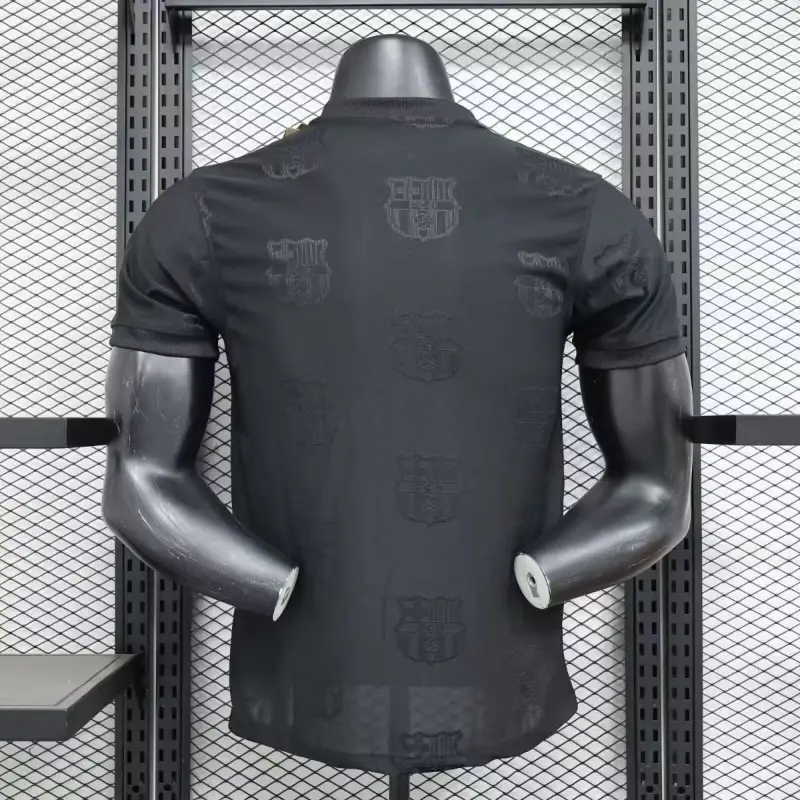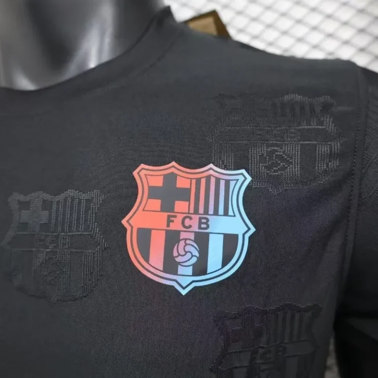 The FC Barcelona 24/25 Black Special Edition – Player Version showcases an elegant and modern design that embodies the club’s sophistication and strength. Crafted for peak performance, this jersey features advanced breathable fabrics and a streamlined fit tailored for athletes. The sleek black colorway is accented with subtle gold and red details, paying homage to Barça’s storied legacy. Perfect for players and dedicated fans alike, this special edition jersey is a bold statement of loyalty and style for the 24/25 season.