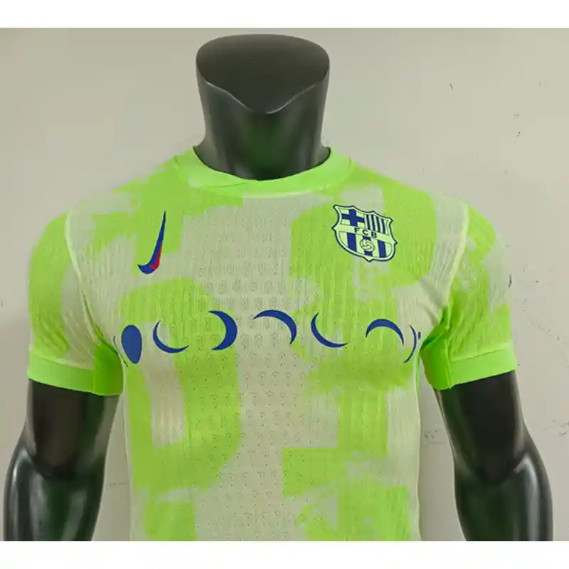 The FC Barcelona 24/25 Coldplay Edition Third Kit – Player Version is a vibrant celebration of music and football, inspired by the iconic band Coldplay. Designed for peak performance, this jersey features lightweight materials and a precision fit for on-pitch excellence. The design incorporates bold, colorful patterns reminiscent of Coldplay’s dynamic stage visuals, blending Barça’s football heritage with a touch of artistic flair. A must-have for fans who want to showcase their love for the beautiful game and legendary music.