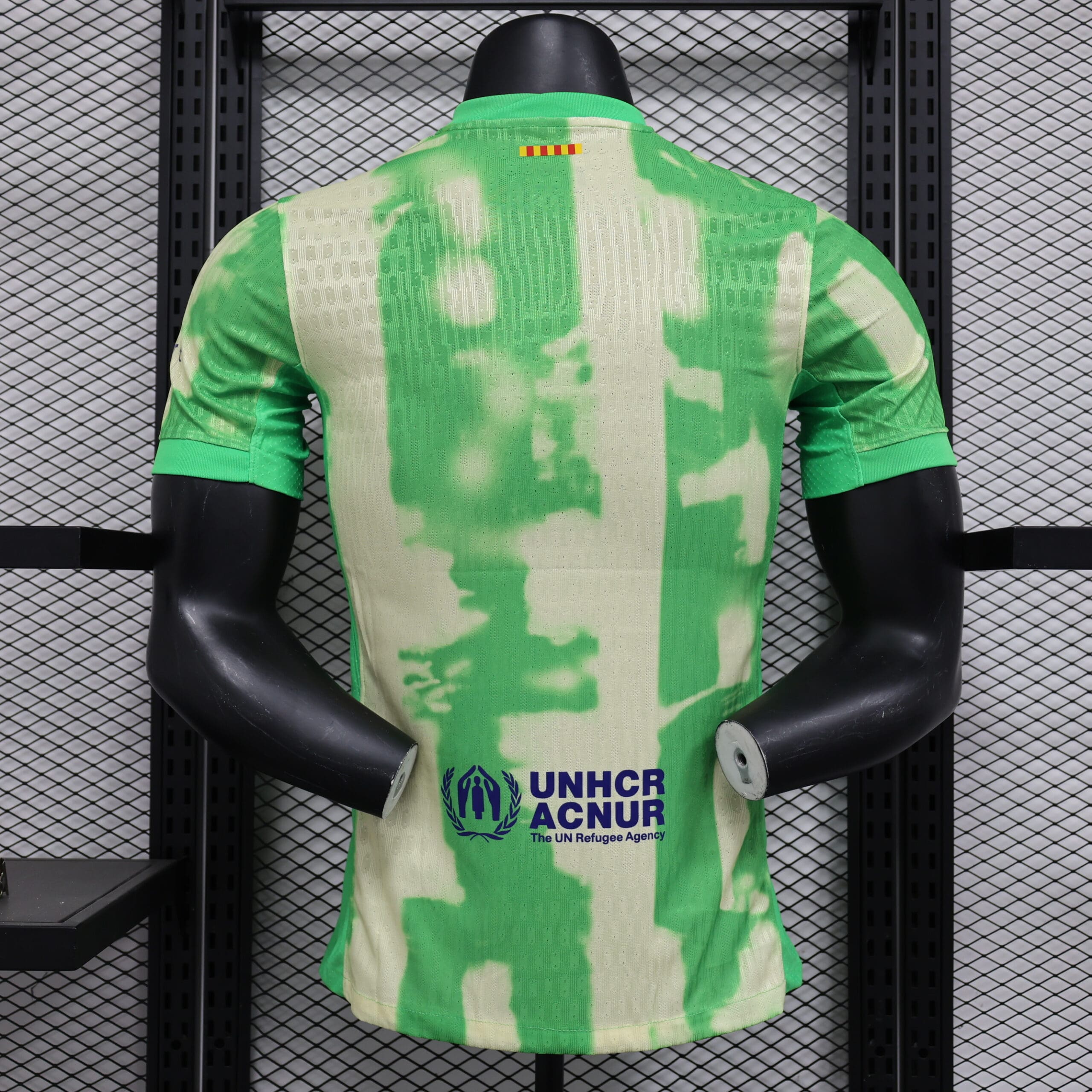 The FC Barcelona 2024/25 Third Jersey – Player Version is a striking representation of the club’s commitment to innovation and excellence. This football jersey features a unique and modern design, departing from the traditional blaugrana colors, with a bold new color scheme that stands out on and off the pitch.