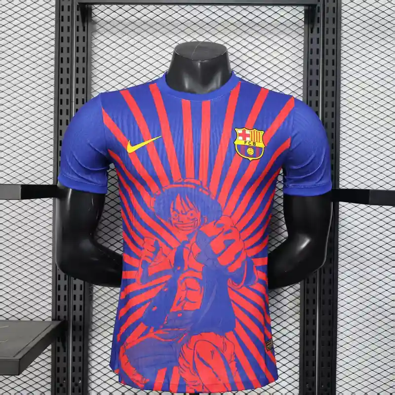 Unite the worlds of football and anime with the FC Barcelona Luffy One Piece Edition Kit – Player Version, a special jersey that pays tribute to the legendary captain of the Straw Hat Pirates. Designed for true Barça fans and anime lovers alike, this unique kit blends the club’s iconic identity with the adventurous spirit of Monkey D. Luffy from One Piece.