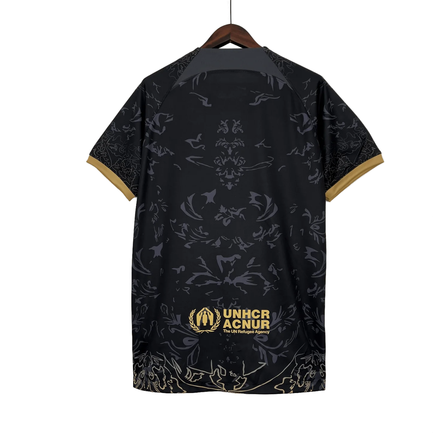 The FC Barcelona Special Black & Gold Kit Fan Version is a placing soccer jersey that mixes cutting-edge fashion with the membership’s iconic historical past. Featuring a swish black base accented with high priced gold detailing, this unique edition kit offers lovers a ambitious and modern way to showcase their passion for Barça.