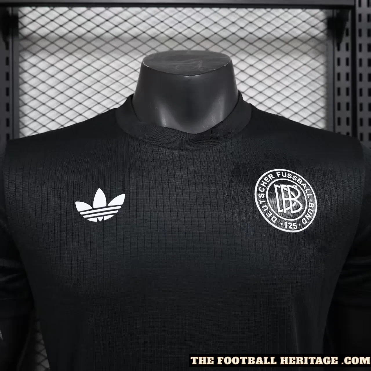 Mark a historic milestone in style with the Germany 125th Anniversary Black Kit – Player Version, a Football Kit that pays tribute to 125 years of Die Mannschaft excellence. Dressed in deep black with refined gold detailing and a commemorative anniversary crest, this Football Jersey embodies class, legacy, and the precision that defines German football.
