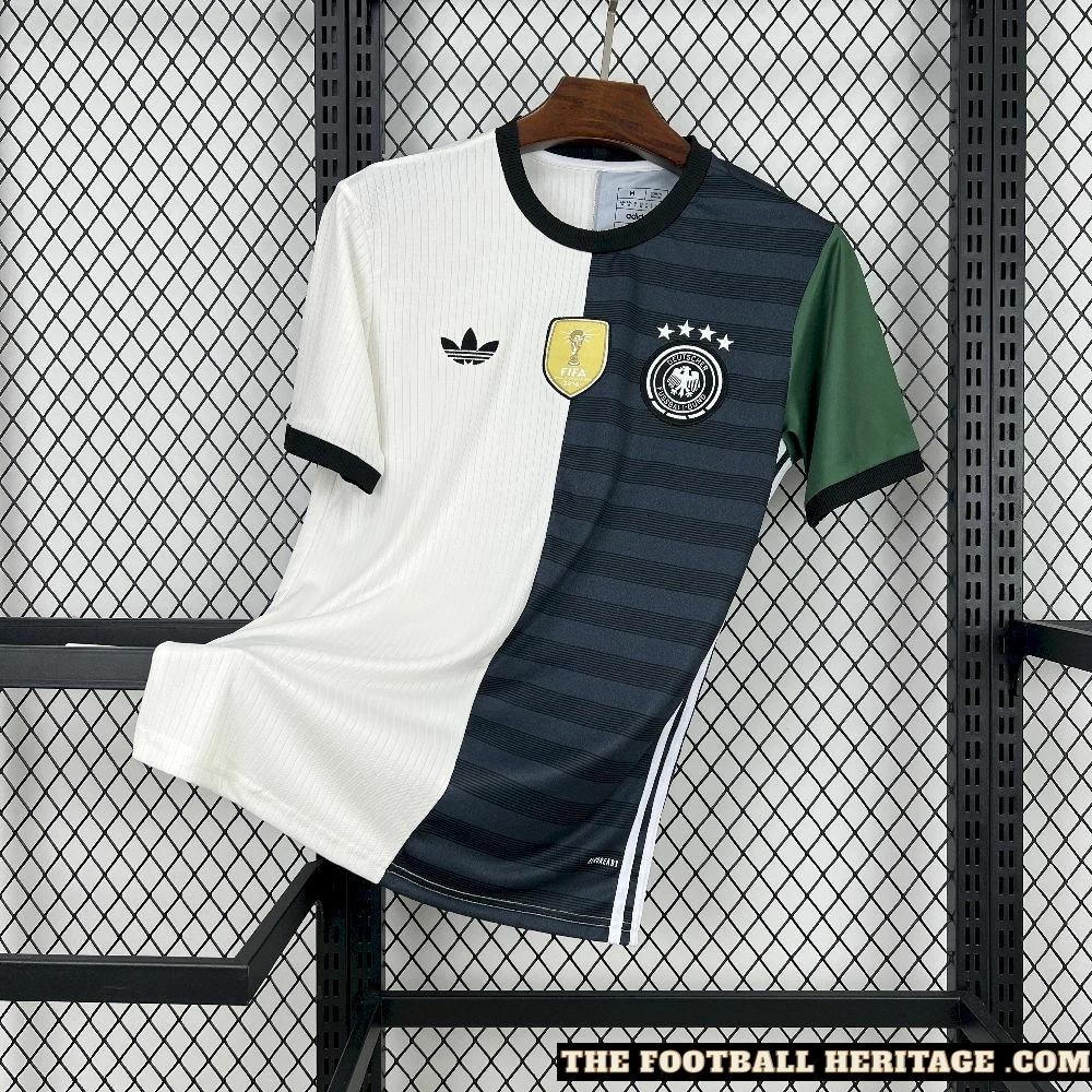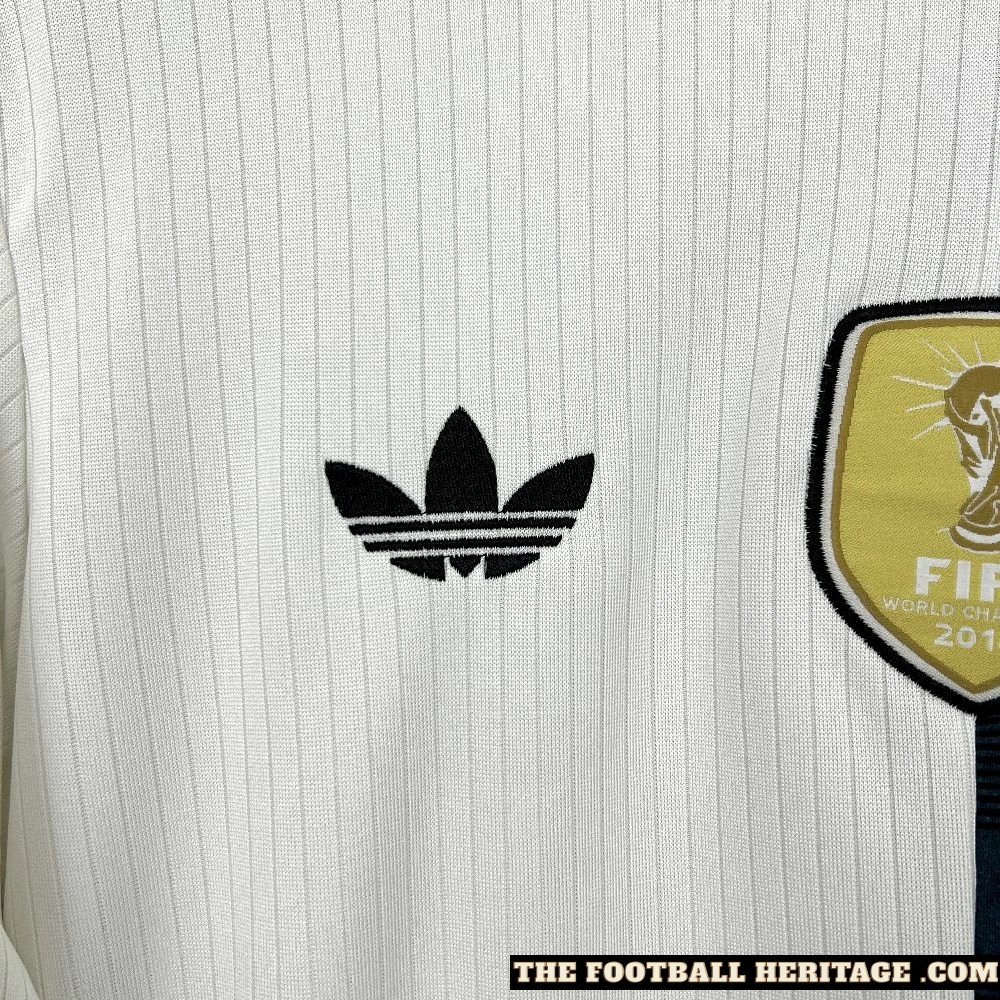 Relive one of football’s greatest triumphs with the Germany 2025 Home Retro Style Kit – World Cup 2014, a Football Kit inspired by the legendary team that lifted the trophy in Brazil. Featuring the iconic white base with black, red, and gold detailing, this Football Jersey celebrates the precision, unity, and brilliance of Die Mannschaft’s unforgettable 2014 campaign.
