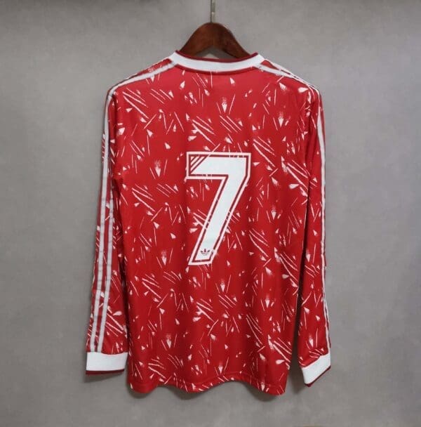 The Liverpool 1989/1990 home red kit, in its long-sleeve variant, serves as a nostalgic homage to the club’s football heritage. This retro jersey is a visual representation of an era defined by resilience and triumph. The enduring charm of the classic red color, coupled with thoughtful design nuances, encapsulates the spirit of a historic season for the team. Worn with pride by the Liverpool faithful, this long-sleeve retro kit symbolizes the dedication and excellence that characterize the club’s legacy. A cherished relic from football’s past, the 1989/1990 home red kit is a testament to Liverpool’s unwavering commitment to greatness.
