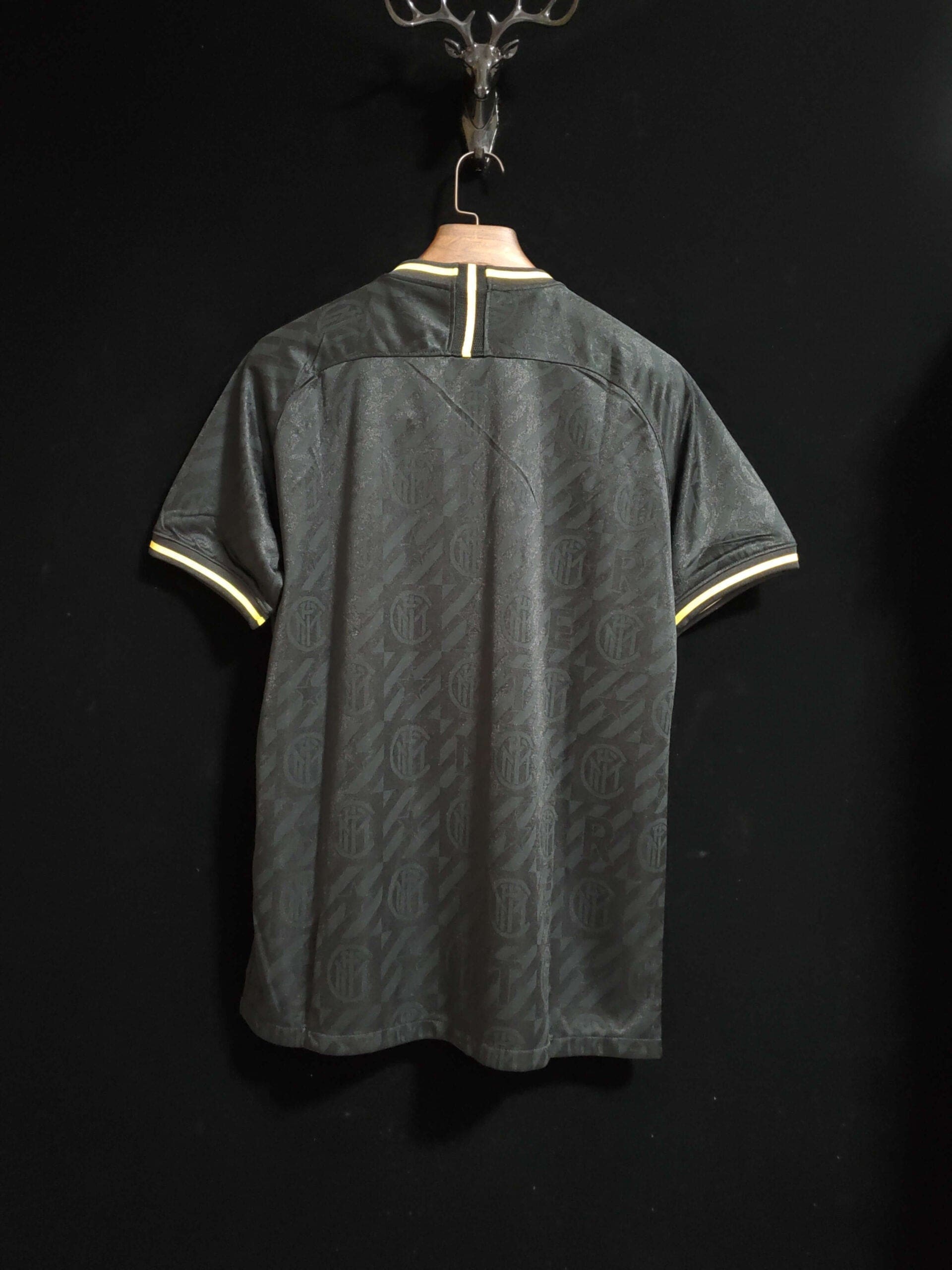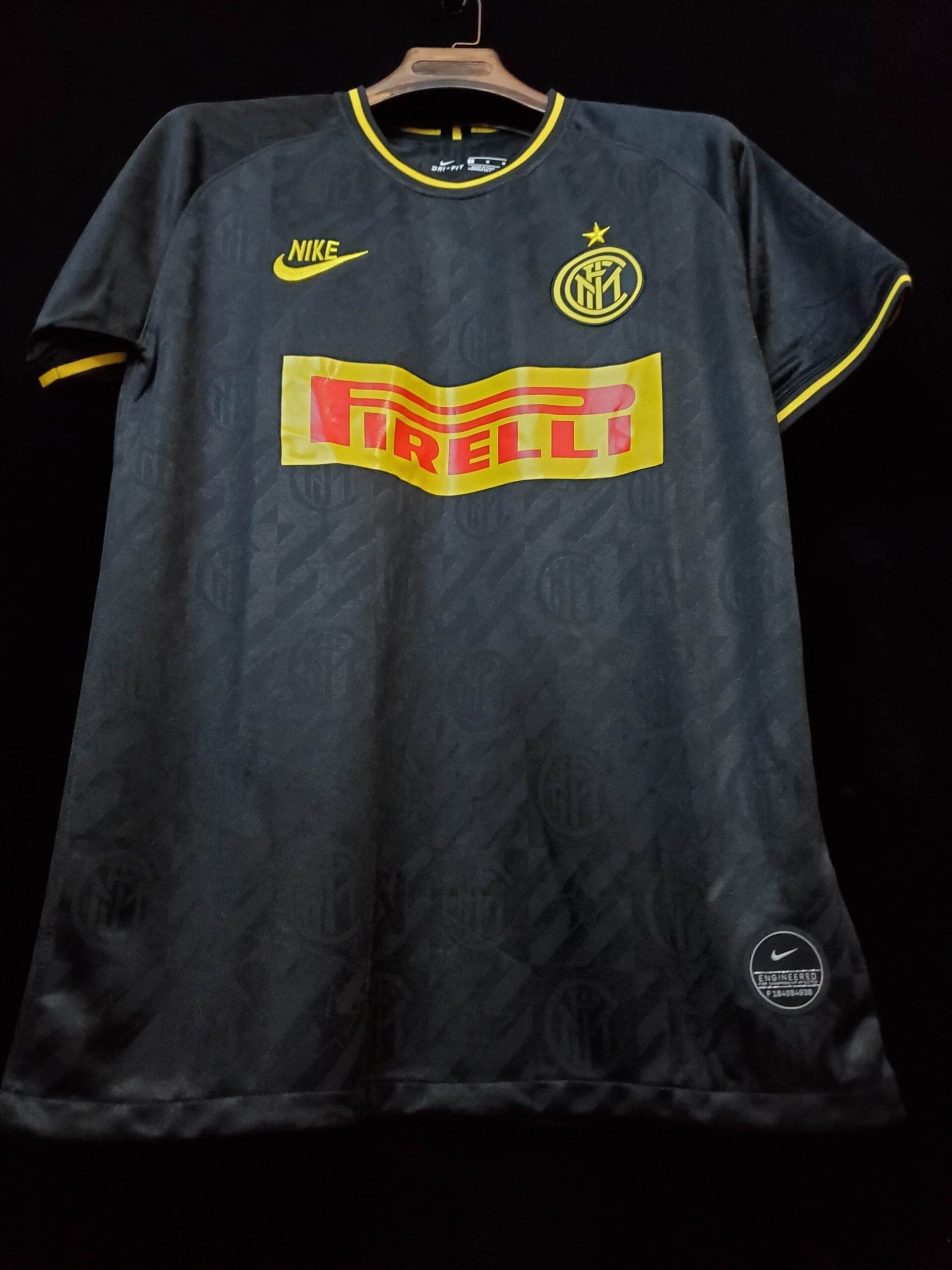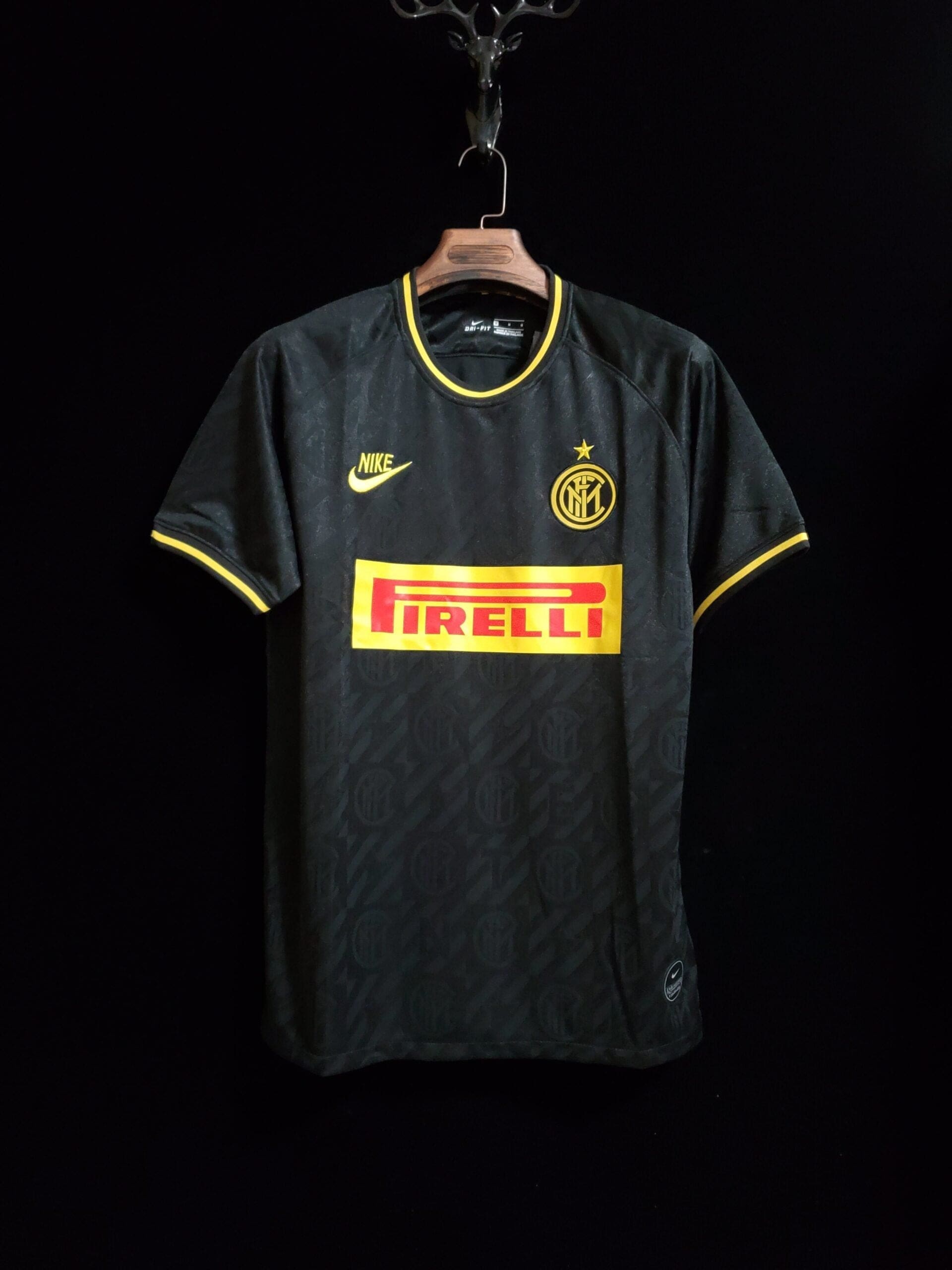 The Inter Milan 2019/2020 Third Away Kit features a stylish black and yellow design with a modern twist. The jersey includes a subtle zig-zag pattern and the iconic club badge on the left chest. This contemporary kit is a must-have for any Inter Milan fan looking to show support for their team with a fresh and modern look.