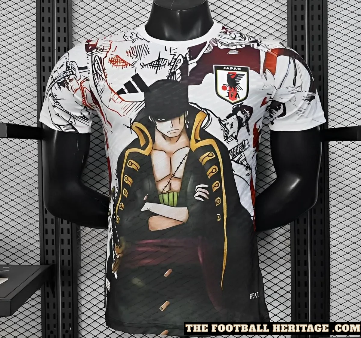 Set sail with the Japan 2026 Zoro Kit – One Piece Player Version, a bold fusion of Samurai Blue identity and the legendary swordsman from One Piece. Featuring a striking Green base with subtle Black and White accents inspired by Zoro’s iconic style, this サッカージャージ combines Japan’s football heritage with adventurous anime energy.