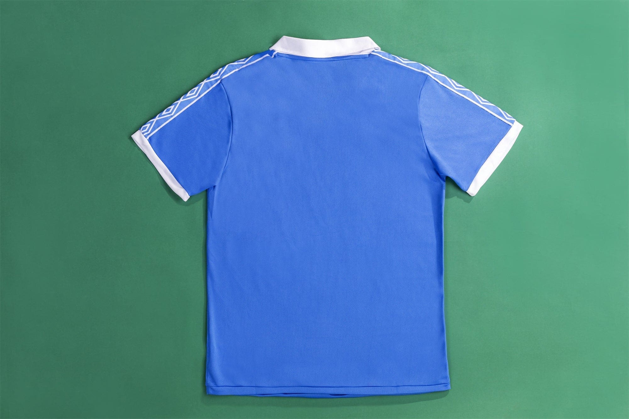 The Manchester City 1981/1982 Home Kit is a classic football jersey that is a part of the club’s football heritage. The kit features the club’s iconic sky blue and white colors, with a traditional collar design and the club’s crest on the left chest. The kit also includes white shorts and sky blue socks with white accents.