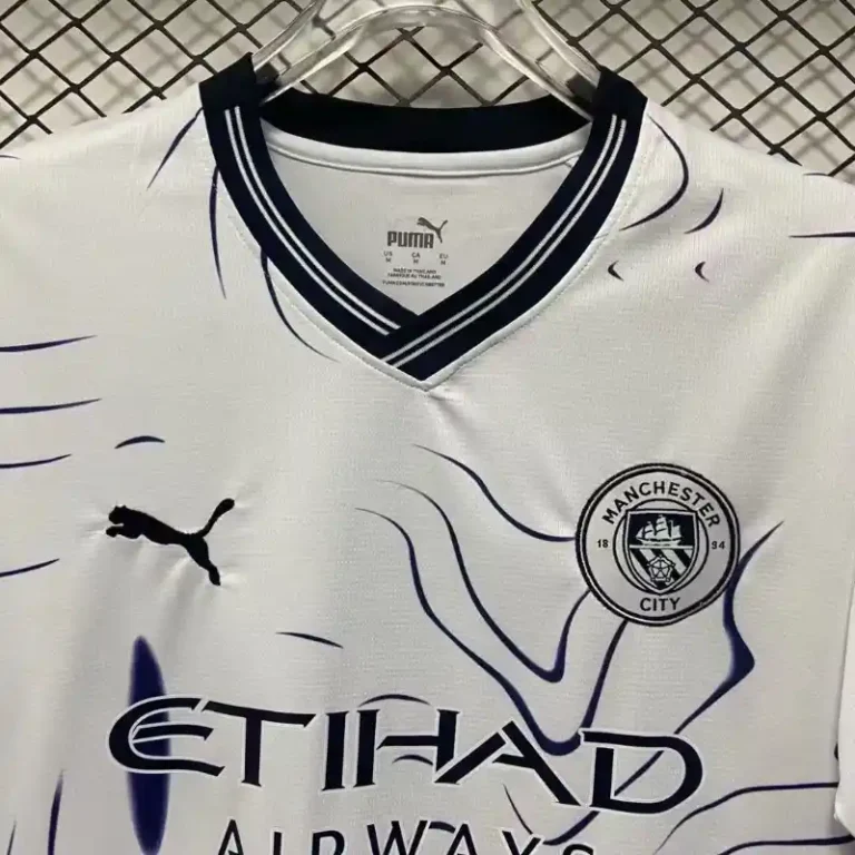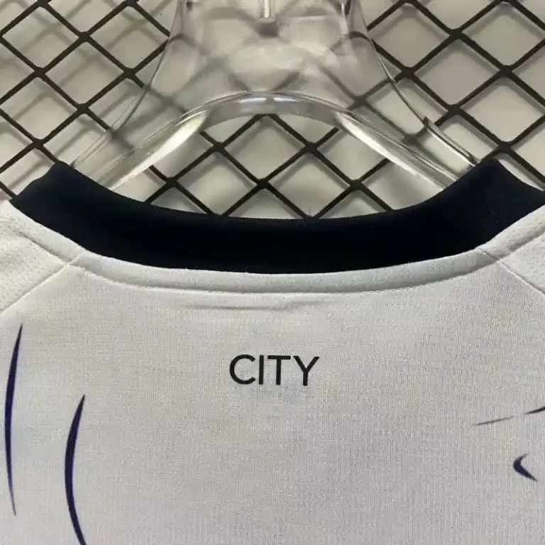 The Manchester City 2024/25 Away White Kit – Fan Version is a stylish tribute to football heritage with a contemporary twist. Featuring a clean white base accented by modern detailing, this classic kit reflects Manchester City’s bold identity and innovative spirit. Crafted with lightweight, breathable fabric, it ensures maximum comfort and durability, making it perfect for fans cheering on the team or wearing it casually. Combining retro jersey inspiration with fresh design elements, this fan version celebrates the club’s proud legacy while delivering a sleek and versatile look for the 24/25 season.