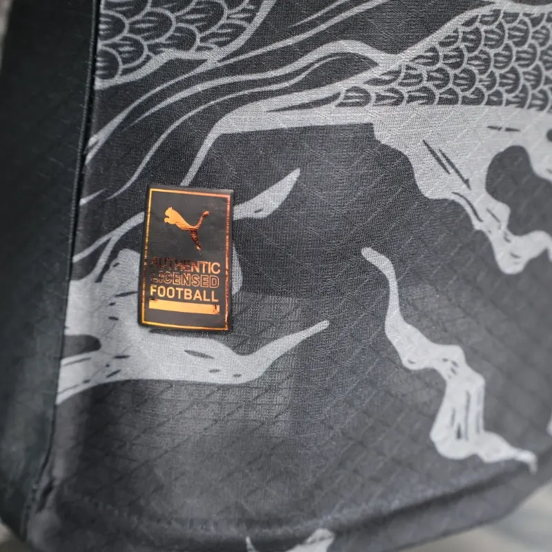 The Manchester City 2024/25 Dragon Black Special Edition Jersey – Player Version is a striking fusion of football heritage and bold design, celebrating the Year of the Dragon with intricate dragon-themed detailing. Featuring a sleek black base with vibrant accents, this special edition jersey captures the essence of power and elegance. Engineered with advanced player-fit technology, it provides lightweight breathability, moisture-wicking fabrics, and a streamlined silhouette for elite-level performance. Perfect for fans of classic kits with a modern twist, this jersey honors Manchester City’s legacy while embracing cultural symbolism and cutting-edge style.