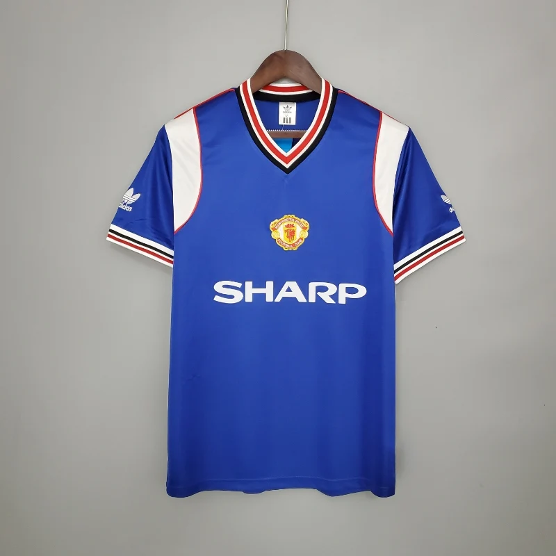 The Manchester United 1985/1986 Third Kit is a striking addition to football heritage, showcasing a bold blue design with red and white detailing. This retro kit stands out as a symbol of versatility and style during a significant era for the club. Worn by legends like Bryan Robson, it reflects the resilience and creativity that defined Manchester United in the mid-’80s. A cherished vintage jersey, this classic kit is a must-have for fans who celebrate the club’s storied legacy.