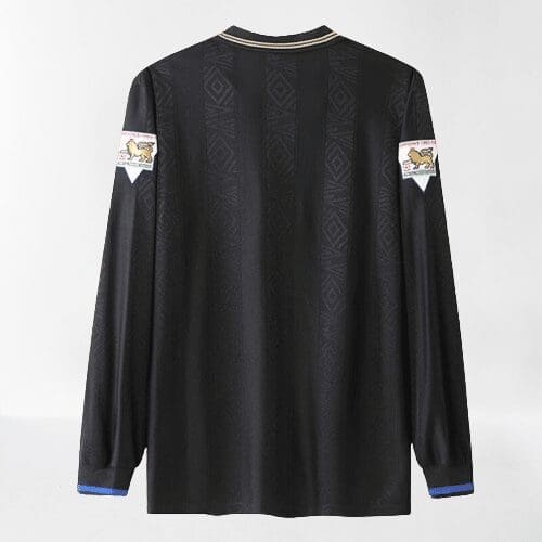 The Manchester United 1993/1994 Third Kit – Long Sleeve is a vintage masterpiece that encapsulates the club’s football heritage during one of its most successful eras. This classic jersey features the distinctive blue-and-black design with subtle geometric patterns that set it apart from other kits of the time. The long sleeves add an extra layer of timeless style, while the iconic crest and sponsor branding evoke nostalgia for the glory days under Sir Alex Ferguson. Worn by legendary players like Eric Cantona, Ryan Giggs, and Paul Ince, this kit is a must-have for fans and collectors celebrating Manchester United’s storied legacy.