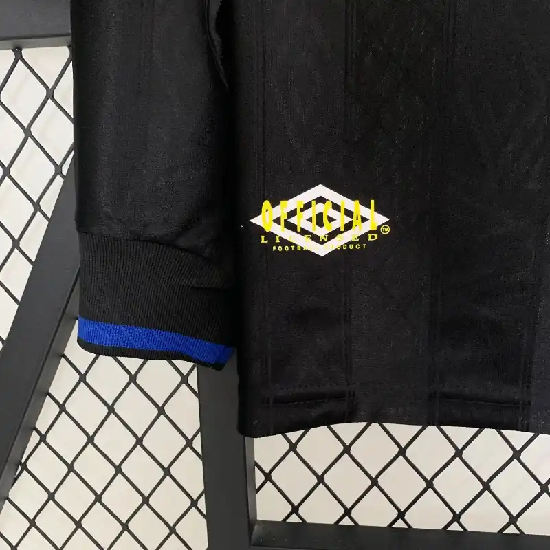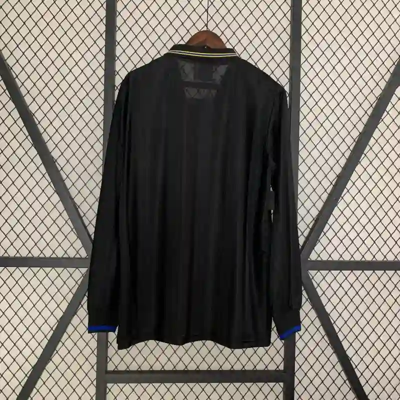 The Manchester United 1993/1994 Away Kit – Long Sleeve is a true icon of football heritage, showcasing the club’s bold presence during a golden era. Featuring a striking black design accented by vibrant yellow highlights and detailed with the classic crest and sponsor branding, this jersey is a timeless tribute to the team’s legacy. The long sleeves add a touch of elegance and practicality, perfect for collectors and fans alike. Worn by legends such as Eric Cantona, Ryan Giggs, and Roy Keane during their dominant Premier League campaign, this vintage kit is a celebration of Manchester United’s rich history and enduring style.