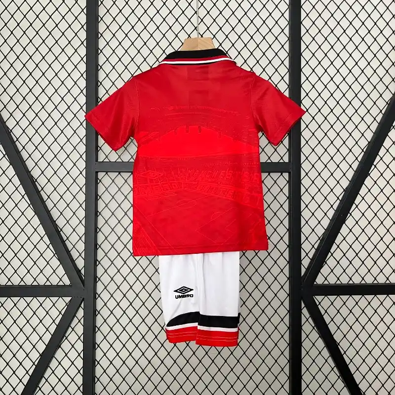 The Manchester United 1994-96 Home Kit for kids is a timeless classic that celebrates the football heritage of the Red Devils. This retro jersey features the iconic red design with a white collar and the Sharp sponsor logo, famously worn by legends like Eric Cantona, Ryan Giggs, and Roy Keane. A piece of vintage football history, this classic kit is perfect for young fans who want to showcase their pride in the club’s golden era.