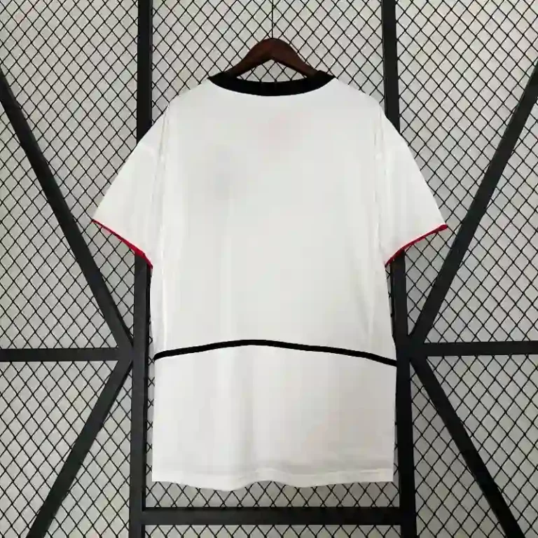 The Manchester United 2002/2003 Away Kit is a timeless symbol of the club’s football heritage during a season of triumph. Featuring a striking white design with bold black accents and red piping, this jersey embodies Manchester United’s classic style and dominance on the pitch. The iconic crest and sponsor branding complete its distinctive look. Worn by legends such as Ruud van Nistelrooy, Ryan Giggs, and Paul Scholes, this kit was part of a campaign that saw the Red Devils clinch the Premier League title under Sir Alex Ferguson. A must-have for fans and collectors celebrating Manchester United’s storied legacy.