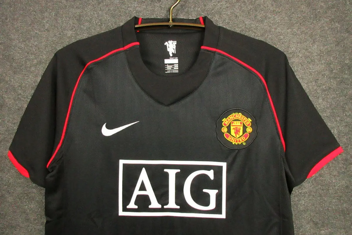 The Manchester United 2007/2008 Away Kit is a classic football shirt with a sleek design. The kit features a unique white and blue colorway, making it a standout vintage jersey. With the iconic club badge and AIG sponsor logo, this retro kit is a must-have for any Manchester United fan who loves football heritage. Its timeless style captures the essence of classic football and is a great addition to any collection of vintage jerseys.