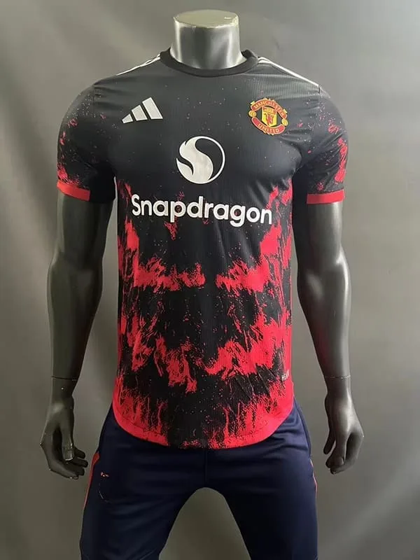 The Manchester United 2024/25 Black Special Kit – Player Version pays tribute to the Football heritage with a striking design that balances modern technology with a classic aesthetic. Inspired by retro kits, this retro jersey offers cutting-edge performance, featuring lightweight fabric and advanced moisture-wicking properties to keep players at their peak during intense matches. The bold black colorway, combined with the iconic Manchester United crest, brings a fresh yet nostalgic vibe, reminiscent of classic jerseys worn during some of the club’s most unforgettable moments. As a vintage jersey, this classic kit stands as a true representation of Manchester United’s storied legacy, ensuring that fans and players alike can proudly wear a piece of history.
