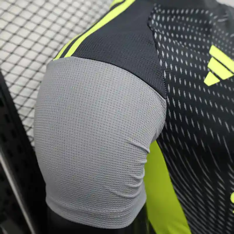 The Manchester United 25/26 Black Kit – Player Version brings a bold, minimalist design to the pitch. Cloaked in deep black with subtle red accents, this football jersey reflects the club’s legacy of strength, style, and dominance under pressure.