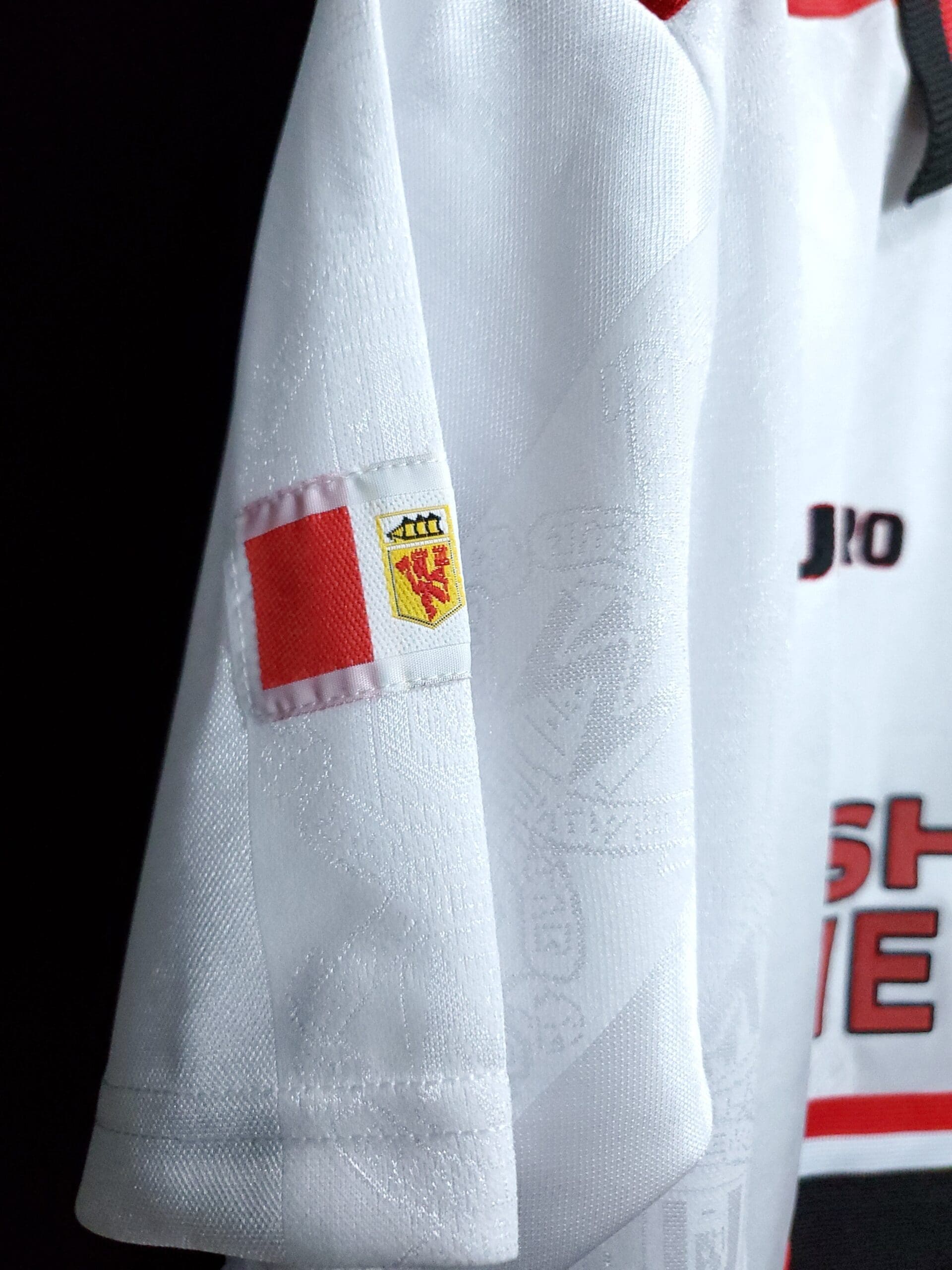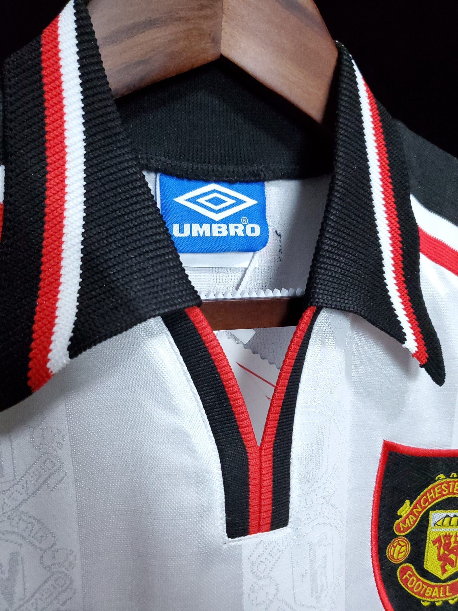 The Manchester United 97-98 Away Kit is a stunning representation of vintage kits and old jerseys, paying tribute to England’s retro football heritage and its place in the Premier League. This classic jersey features a sleek navy blue base with white trim and the iconic Manchester United crest prominently displayed on the chest, embodying the team’s rich football history. From the famous battles at Old Trafford to the tense away matches across the country, this jersey is a beloved symbol of Manchester United’s Premier League success and their status as one of the greatest football clubs in the world. Whether on the pitch or in the stands, this timeless design is sure to stir up feelings of pride and nostalgia in fans of all ages.