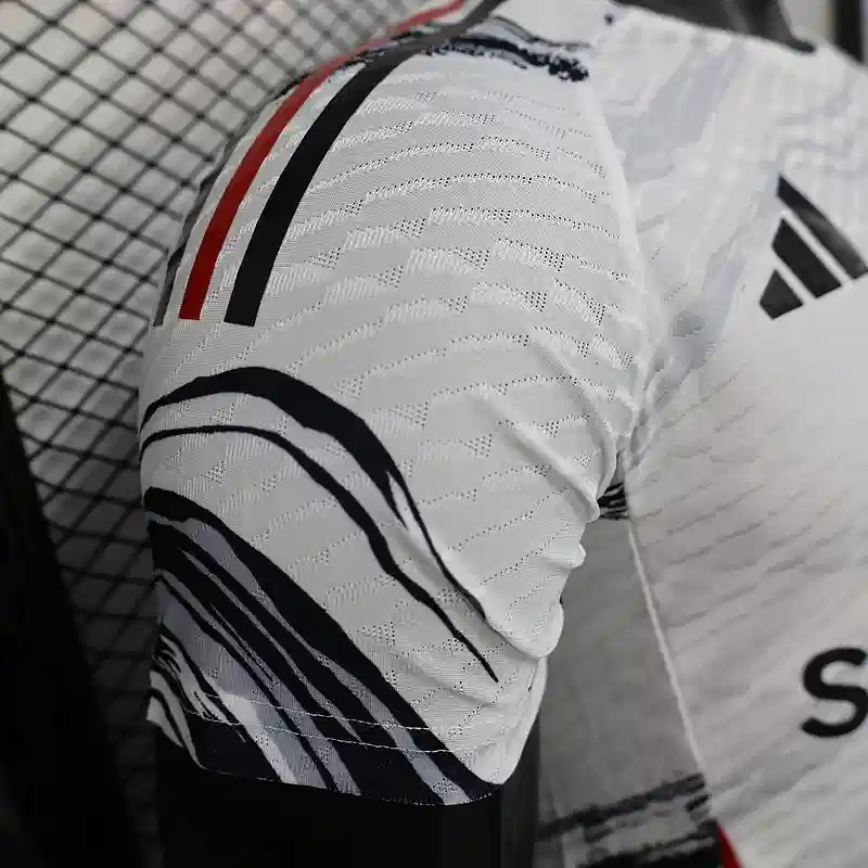 The Manchester United White and Black Kit – Player Version blends minimal style with elite performance. Featuring a crisp white base accented by sharp black detailing, this football jersey reflects both modern energy and Manchester United’s classic legacy.