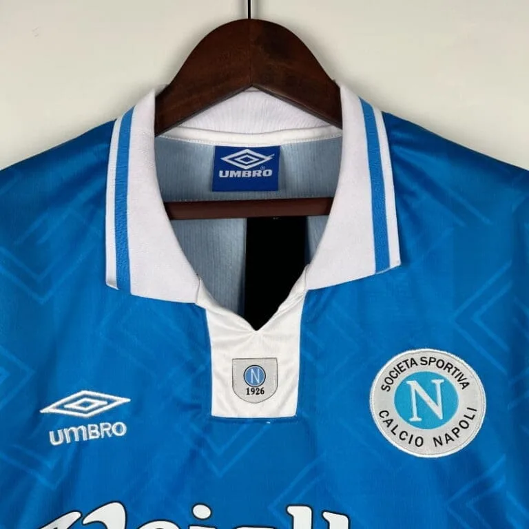 The vintage jersey features the club’s traditional sky blue with sharp design elements that set it apart from the earlier kits, while still honoring Napoli’s legacy. Although the club wasn’t able to replicate the glory days of Maradona’s reign, this kit is a symbol of the resilience and passion of players like Giovanni Francini and Fabrizio Di Mauro, who wore it with pride. For any Napoli fan, this is a must-have for remembering the club’s rich history.