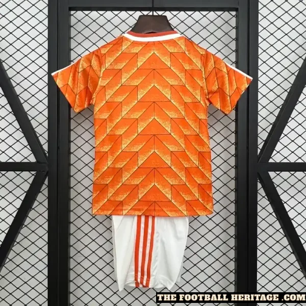 Celebrate the honour of Oranje with the Netherlands 1988 Home Kit – Kids Set, a miniature model of one of the maximum iconic Dutch kits in records. Featuring the vibrant Orange base with traditional Black detailing, this Football Jersey set brings the spirit of the legendary Euro 1988-winning squad to young supporters.