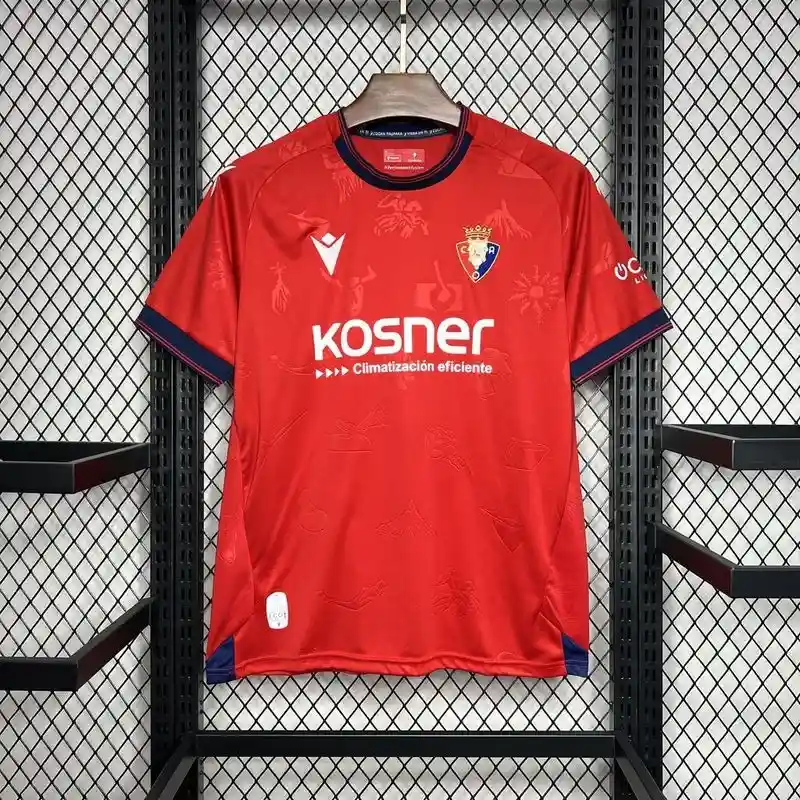 The Osasuna 24/25 Home Kit – Fan Version is a stunning representation of the club’s football heritage, merging modern design with traditional elements. The striking red color captures the essence of Osasuna’s identity, while the clean lines and precise craftsmanship highlight the club’s commitment to excellence. The vintage jersey-inspired details, including the iconic crest, evoke memories of past glories, making it a must-have for fans who cherish the classic kit feel. Whether worn on the pitch or in the stands, this retro kit connects fans to Osasuna’s rich legacy, offering a stylish way to celebrate the club’s continued growth and success.