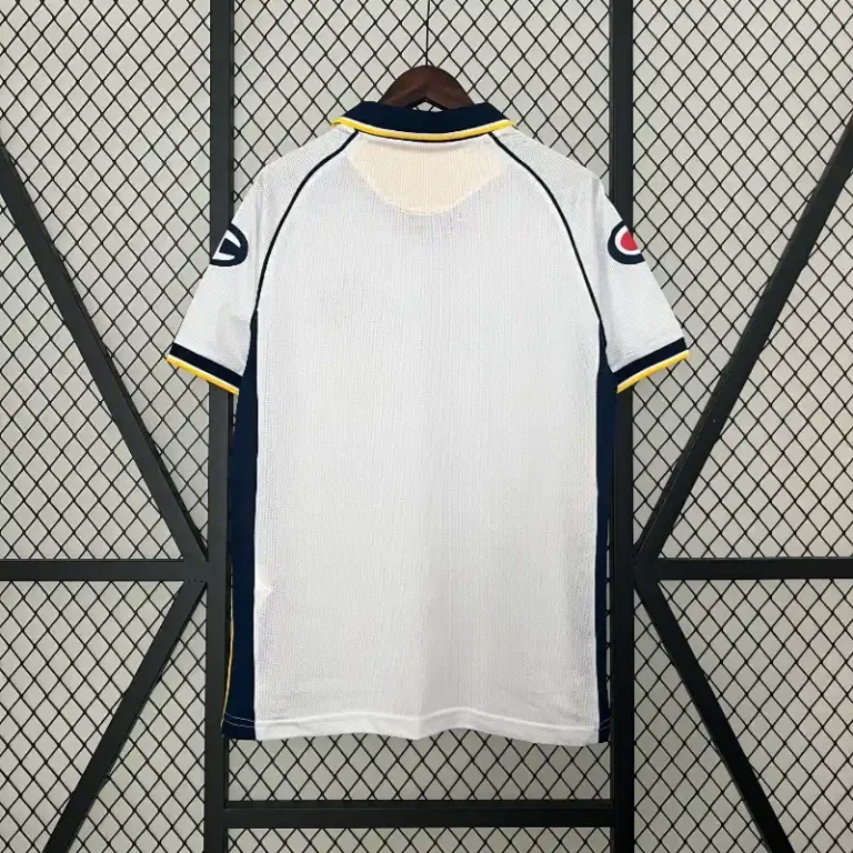 The Parma Calcio 2003-04 Away Kit is a classic jersey that embodies the Football heritage of one of Italy’s most exciting clubs. This retro kit features a sleek white design with bold blue and yellow accents, reflecting the club’s iconic color scheme. Manufactured by Champion and sponsored by Parmalat, this vintage jersey is a true throwback to an era when Parma remained a strong force in Serie A.