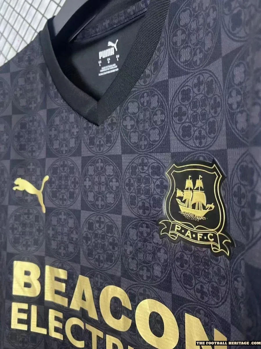 The Plymouth Argyle 25/26 Away Black Kit – Fan Version is available now at thefootballheritage.Com – The Football Heritage.