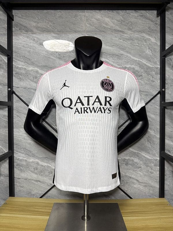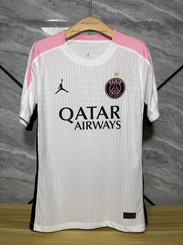 PSG White Jordan Special Edition Kit – Player Version is where street culture meets football greatness. This clean and bold football jersey combines Paris Saint-Germain’s elite heritage with the iconic Jordan brand, delivering a standout look on and off the pitch. The player version football kit is made with premium, breathable fabric for pro-level performance, just like what the players wear. Perfect for collectors of classic football shirts, fans of retro kits, and lovers of cutting-edge soccer vintage kits, this new kit is a stylish tribute to the football heritage of Paris—redefined through sport and style.