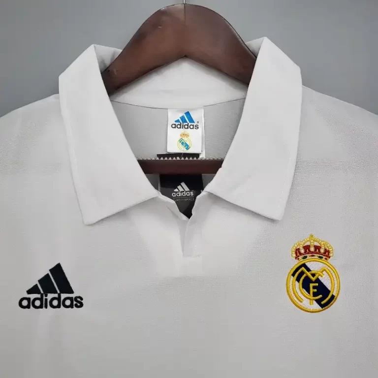 The Real Madrid 2002-03 Home Kit is a classic jersey that embodies the football heritage of one of the most successful clubs in history. Featuring the iconic all-white design with black accents and the club’s famous logo, this retro kit exudes elegance and dominance. Worn by football legends such as Zinedine Zidane, Raúl González, and Roberto Carlos, the kit represents an era where Real Madrid captured the hearts of fans worldwide with their star-studded lineup and dominant performances. This vintage jersey stands as a testament to the golden era of the early 2000s, where Real Madrid continued to solidify its place at the top of European football, making it a true collector’s item for fans of classic kits and timeless football history.